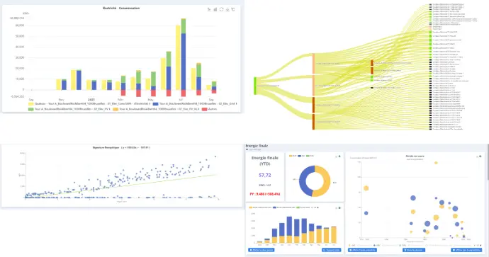 Monitor your consumption (electricity, gas, water) by end use in real time and detect anomalies. Compare your emissions with CRREM pathways, generate EPRA reports, and activate predictive models to anticipate future needs.